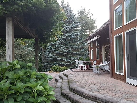 Hillside 2 story home on secluded 14 acres with 30 x 40 garage w/10 ft. ceiling has apartment w/elevator on 2nd level. Entertaining a breeze with 2 tier stone patio & wisteria draped pergola plus pizza hut w/ roman vault brick oven & party room w/wood burning stove. Inside an abundance of natural light, 26' cathedral ceiling, heated floors, 400 bottle wine cellar, open floor plan with too many amenities to mention. Additional 8 acres of mature woods available with another 26 acres with a total of 48 acres available.