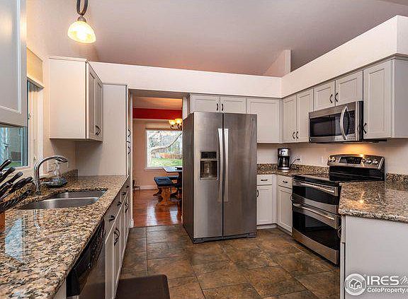 Fantastic Canyon Creek ranch home with 3 bedrooms plus office. Sunny, remodeled, eat-in kitchen with granite counters & stainless appliances. Separate dining room with bay window. Beautiful interior features include engineered wood flooring, brick fireplace, vaulted ceilings, lofty, bright open floor plan. Vaulted primary suite with full bath and walk-in closet. Main level office, 2nd BR, full bath & laundry rm. Partially finished basement with conforming 3rd bedroom currently used as office. Large unfinished area ready for an additional bedroom or rec room. Relax on the delightful stamped concrete patio and enjoy the xeriscaped yard w/pathways, pergola, trellis, shade trees and perennials. Furnace, tankless water heater, A/C & Roof new in 2014. 5.2 KW owned solar PV system. New windows 2020. So many updates-see list in docs. Small neighborhood park just around the corner and larger neighborhood park a few blocks away. Quiet, Boulder County location with easy access to all amenities.