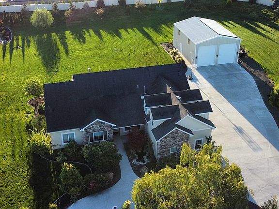 1.3 MILLION TO REBUILD! PRICED TO SELL! Meticulously maintained home with almost 2 fully landscaped park-like acres on a private Culdesac street located in the county but close to everything. A multigenerational home with 2 masters on main level (one mini w/ 36"doors), AND a seperate apt. studio with its own kitchen and full bathroom upstairs. Home features an impressive outdoor night low watt display that must be seen to appreciate the over 78 lights that illuminate its features. Masters have their own entrance and patios. Large heavy-duty steel 30x40 shop w/heavy duty concrete floor & RV Parking, 220 power. Solar system for the home and shop w/ separate wired backup generator. Mature self-maintaining landscaping w/ over 350 plus trees and bushes. Stunning in-ground firepit. High capacity individual well, & oversized septic system. Inside boasts a beautiful floor plan w/ granite counter tops & custom kitchen, lots crown molding, LVP, dualside fire place. NO HOA! Animals welcome!