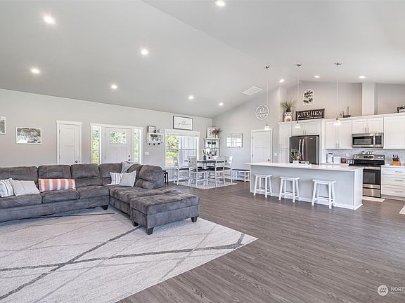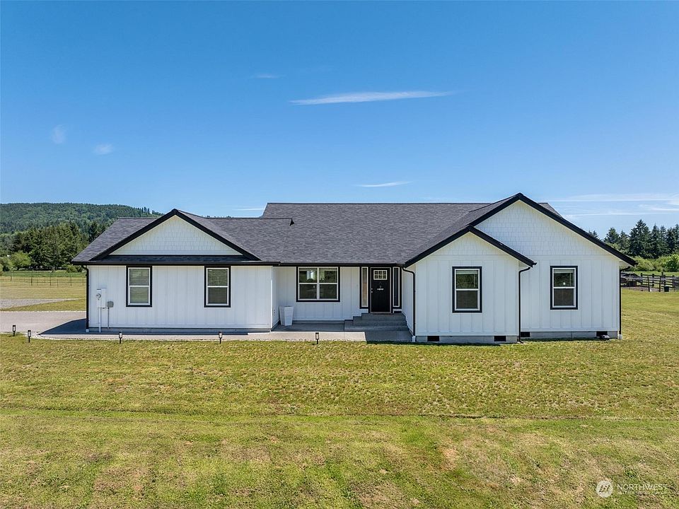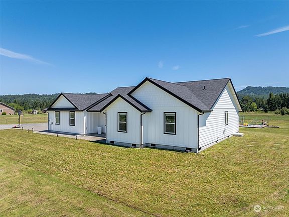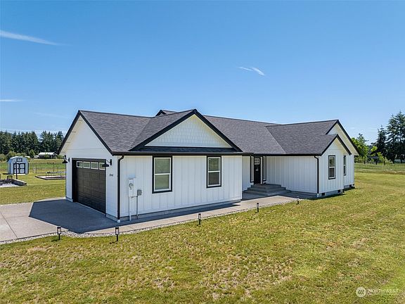 Discover this beautiful, hard-to-find home set on 6.1 level acres! This property features an open concept design, a stunning kitchen with white cabinets, stainless steel appliances, and a large island with granite countertops that overlooks the main living areas. The sunlit interiors offer captivating territorial views. The spacious master suite includes a soaking tub and walk-in closet. Enjoy vaulted ceilings and ample storage throughout. The home offers plenty of privacy with a huge backyard, a playground, patio, fire lounge, and RV parking. Experience the tranquility of country living while being just minutes from town and 10 miles from I-5.
