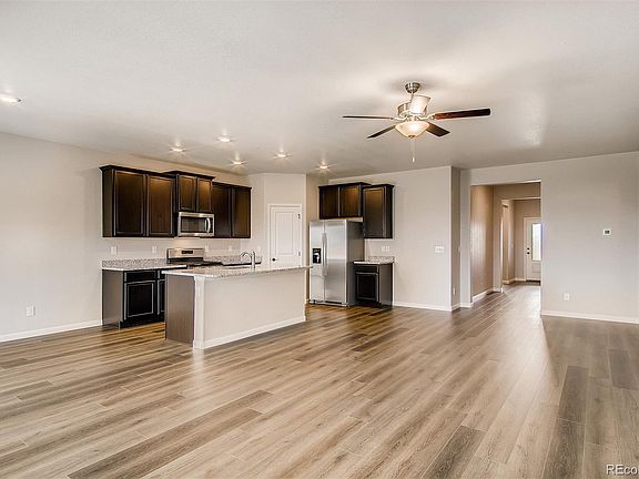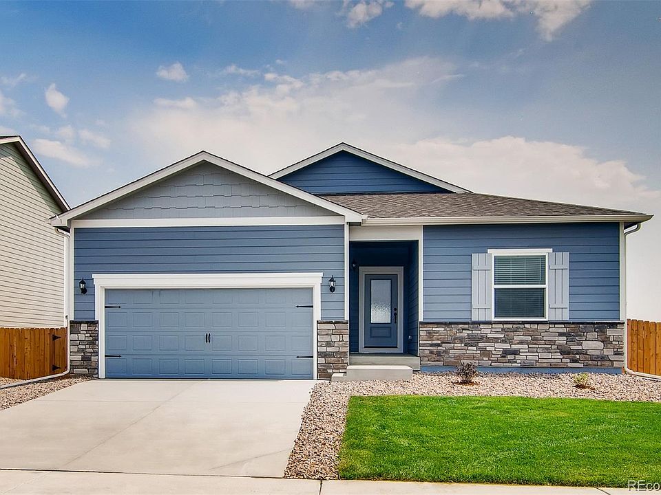 Boasting with charm, this stunning new-construction home is now available at Second Creek Farm in Commerce City where homeowners enjoy a beautiful setting and charming amenities. This one-story, three-bedroom, two-bath home provides 1,965 square feet of living space in a desirable layout with designer finishes including gorgeous 42-inch upper cabinets, quartz countertops and stainless steel kitchen appliances. The chef-ready kitchen, which opens to the dining and family rooms, makes food prep a breeze. The highly coveted flex room can be used as an office, playroom or media room – the choice is yours! Other incredible features of this home is the covered patio and master bedroom suite with a soaking tub, enclosed shower, double-sink vanity and walk-in closet.