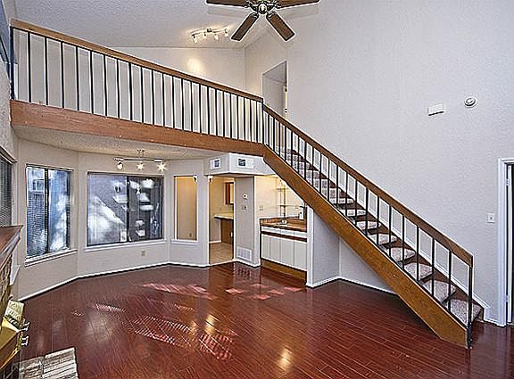 Two master suite condo w-garage & large patio areas. Downstairs master has jetted tub. Master up has dressing area, a jetted tub. Master upstairs also has a balcony. Flexible floor plan. One parking spot & garage. Track lighting. Two community pools & spa.