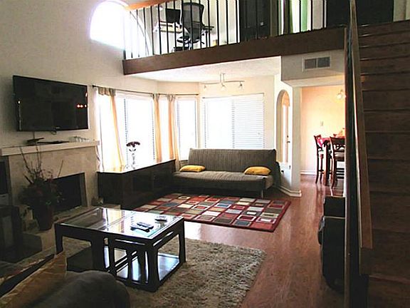 Amazing 2,2,1 w 2 living.Private Patio w trees.All appliances included.Eat-in kitchen w french doors to covered patio.Large living w beamed ceilings,brick FP,wet bar.Master w private bath,large vanity& sitting area w private entrance to deck.2nd BR w bath & jetted tub. Lots of storage thruout. Granite in baths & kitchen.1 detached garage,1 assigned parking spot. Great condo in a great area. This one will not last long.