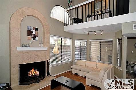 Charming Mediterranean Condo. Open and bright with lots of windows. Vaulted ceilings with tiled fireplace. Welcoming courtyard with cozy patio. Convenient location to Dallas North Tollway & George Bush.