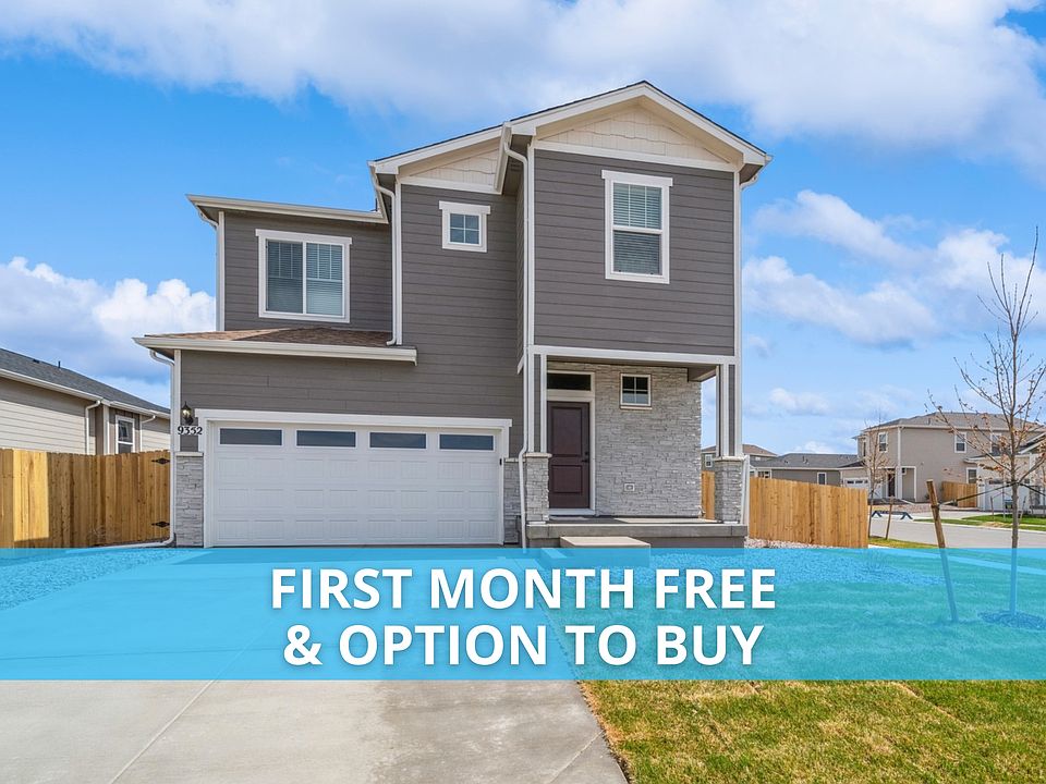 Receive the first month rent free! NEW CONSTRUCTION RENTAL WITH THE OPTION TO OWN! This Pathway Rent+ home comes with the OPTION TO BUY at the end of year 3, PROFESSIONAL PROPERTY MANAGEMENT, TAILORED HOMEOWNERSHIP COACHING, and FREE MORTGAGE-READINESS RESOURCES, all at no extra cost. Plus, there are NO EXTRA FEES OR PENALTIES associated with leaving at the end of your lease. This home offers a spacious open-concept layout with a versatile flex room, ideal for use as an office or den. The kitchen, the heart of the home, features energy-efficient stainless steel appliances, a large kitchen island, a walk-in pantry, and a quartz-topped breakfast bar. The seamless flow between the kitchen, dining, and family rooms is perfect for gatherings, with natural light illuminating the dining area and sliding glass doors leading to a large covered patio. The expansive master retreat includes a luxurious bathroom with a double-sink vanity, soaking tub, glass-enclosed shower, and walk-in closet. With four additional bedrooms, a fenced backyard, and front yard landscaping, this home is perfect for comfortable living. The community offers unmatched convenience with easy access to Denver International Airport, downtown Denver, and Barr Lake State Park for outdoor adventures. Don't miss out on your opportunity to create amazing memories in your new home. Apply online or contact us now to learn more! This home can only be rented through Pathway Homes. Pathway Homes will never ask you to wire money or pay with gift cards. Prospective tenants have the right to provide Pathway Homes a portable tenant screening report, as defined in section 38-12-902(2.5), Colorado Revised Statutes. If a prospective tenant provides a portable tenant screening report, Pathway Homes is prohibited from charging a rental application fee or charging a fee to access or use the portable tenant screening report.