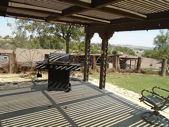 Woodcrest horse property with the private drive an amazing views along with six horse stalls, a tack room, wash station, koi pond waterfall and lots of outdoor living make this a great home for the outdoor enthusiasts. There is plenty in the inside as well including updated large entertainers kitchen with granite counters, newer flooring, abundant cabinetry with built-in bookcase for additional storage as well as a large it walk in pantry and a separate vegetable sink. The family room opens out to the covered patio with an above ground spa to relax and enjoy the miles of peaceful views. Down the hallway you will find four bedrooms and two bathrooms. The main bathroom features a jetted tub and white cabinetry. Newer dual pane windows, HVAC and some updating make this home easy living. In the backyard has artificial grass for easy maintenance so you can enjoy every moment, always looking out to a "lush" backyard. Plenty of room for your toys or even a built in pool!