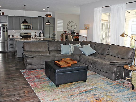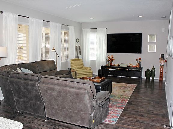 You will love this gorgeous custom home that is just like new! Step through the front door onto the beautiful engineered hardwood floors that extend throughout the main level and relax in the spacious living room. Share a meal with your family in the comfortable dining room after cooking in the stunning kitchen with slab granite countertops, Maple cabinets with soft close doors, tile backsplash, center island/breakfast bar, pantry and stainless steel appliances. Work from home in the main floor office or relax in the large master bedroom with a barn door to the master bath that includes double sinks and a large walk-in closet. The two other upper bedrooms and full bath with a raised vanity are great for kids, plus enjoy 2nd floor laundry. Gather around the gas fire pit on the covered patio and enjoy the extended deck and maintenance free AstroTurf yard. This home is pre-wired for security and has plenty of storage space in the basement too. Also enjoy the parks, trails, community pools, recreation center and Reunion coffee house in this wonderful community.