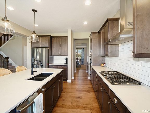 Don't miss this one!! This is the one you've been waiting for! First time offered and better than new! This beautiful home was built in 2018 and has over $100,000's of designer upgrades! The Dillon 2 model from Richmond American Homes offer 4 bedrooms, 3 and 1/2 baths, dedicated office, dining room, huge loft, office nook, 3 car garage, laundry with cabinetry and sink, mud room off garage, huge kitchen and butler's pantry! This home is pre-wired for surround sound on both the main and upper level. The unfinished basement is over 1900 sq feet and is ready for the finishing touches that best meet your needs. Plumbing is in and egress windows lead to unlimited possibilities! The backyard is quiet and equipped with upgraded covered patio and exterior gas already in for the barbecue! Located in one of Parker's best neighborhoods this home is situated on arguably the best lot in Anthology, perched high with breath-taking views (Pikes Peak), morning sunrises and backs to open space! Anthology offers open space, parks and amazing pool ( a stones throw away), clubhouse and access to Cherry Creek Trails! Close to shopping, highways and restaurants, Parker truly has something for everyone. You will not find more in a residence at this price point in beautiful Parker, Colorado! Thanks for taking a look at your future forever home! You will not be disappointed! Please check out attached virtual Walk thru!