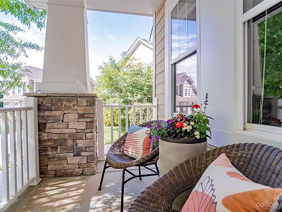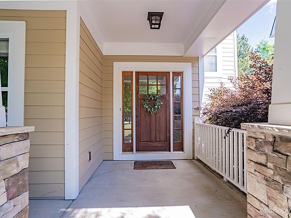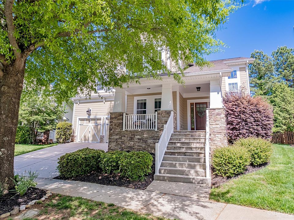 The feeling of home begins with the tree-lined streets to the Jetton Cove community! This welcoming property is situated on a quiet cul-de-sac and overlooks a shaded common area. The cozy porch leads to the craftsman entry and into a large foyer that flows into the living and dining areas. The living room features vaulted ceilings and custom built-ins that compliment the kitchen palette and enhance the warmth of the hardwood floors.The central kitchen allows for connectivity to the dining room, living room, breakfast nook and screened porch. The main level primary suite is a relaxing retreat with views of the private fenced backyard and water feature. Enjoy the outdoors under the pergola on the back patio surrounded by mature landscaping and gardens. The balance of the five total bedrooms are located on the second level, off an extra wide hallway with two walk-in closets, and all provide abundant storage. Meet your new neighbors at the community pool and play area!