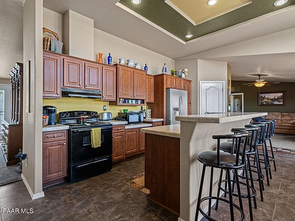 BREATHTAKING VIEWS FROM THE TOP OF PEEPLES VALLEY RD. It's an easy drive on paved road but the stunning, panoramic landscape will make you feel you should've worked harder to get there! Beautiful home on just over an acre in gorgeous Peeples Valley, AZ delivers all the comforts of home with character and charm. Special touches throughout include soffit ceilings in kitchen and living room, 2 tier kitchen island and custom windows in all the right places for warm, natural light. Two separate living spaces, a dedicated dining room area, oversized owner's suite with sitting room / office and 3 guest bedrooms provide plenty of elbow space for everyone. ***CLICK MORE for additional important info!***