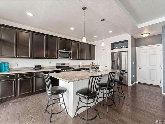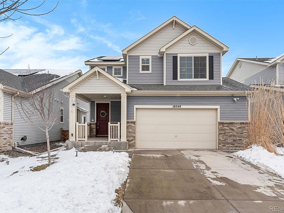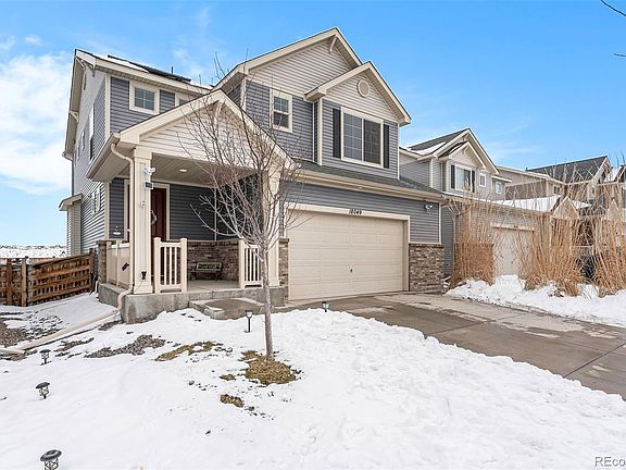Fantastic opportunity! Don't miss out on your chance to own this amazing 3 bedroom, 2.5 bathroom home. On the main level of this home, the living room opens up into the kitchen with a beautiful island that's great for entertaining family and friends! Outside the sliding doors, enjoy the gorgeous Colorado evenings on the raised deck that overlooks the open space! On the second level, you have the primary bedroom with a spacious bathroom and a large walk-in closet. 2 additional bedrooms, a full bathroom, and the laundry room. This home also has an unfinished basement, an attached 2-car garage, and Solar. The community features walking trails, a fitness center, a pool with slides, and more! Not to mention its very own coffee house!
