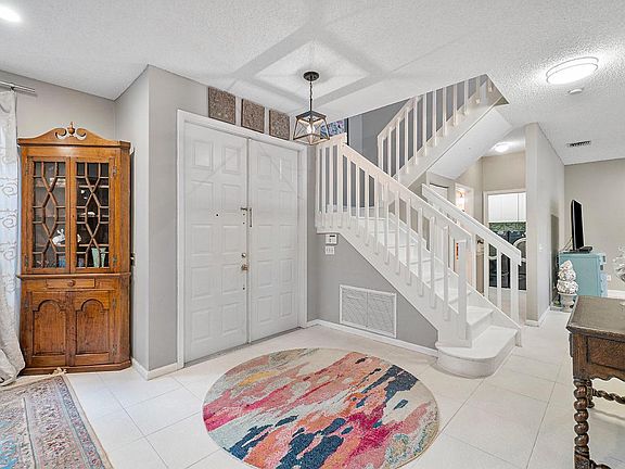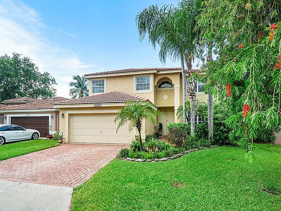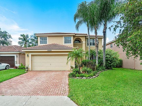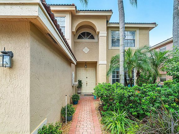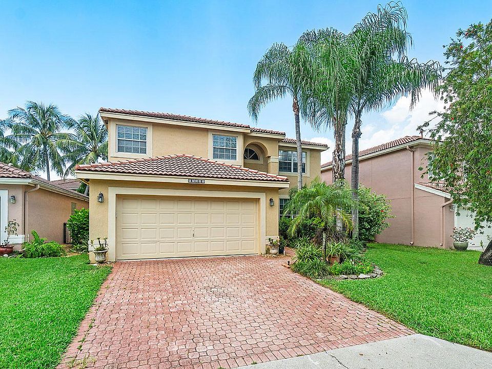 This fabulous home is waiting for you at Symphony Bay in sophisticated Boca Raton. This gated community is a hidden gem not far from the NEW UPTOWN BOCA! This home boasts soaring vaulted ceilings, a light, bright and spacious eat-in kitchen, tile and laminate throughout, formal living and dining areas, an oversized family room and breakfast bar, a huge master bedroom with a walk-in-closet and jacuzzi tub, plus 3 other bedrooms all UPSTAIRS making this home perfect for everyday living and entertaining. Sit outside in your oversized, full length, tiled and screened in covered space while watching the kids make s'mores at the fire pit or practice their golf skills on the putting green.