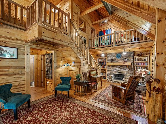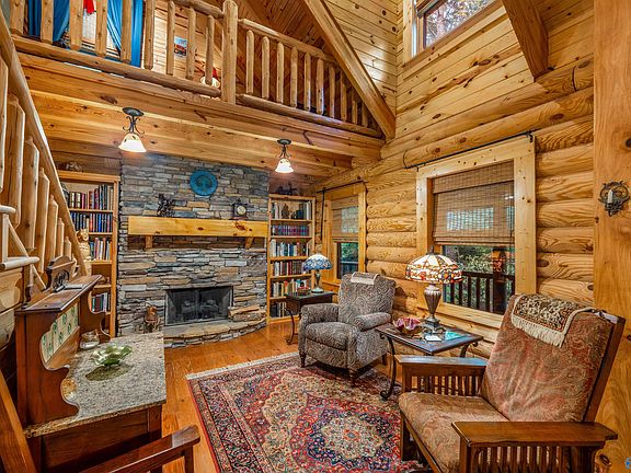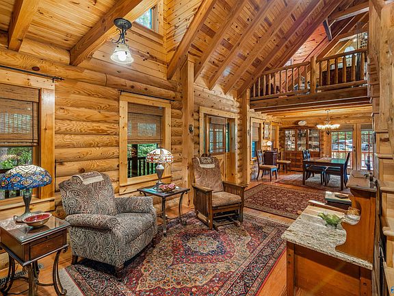 THIS MASTERPIECE is nestled in the WOODS at HIDDEN LAKE near Little River Canyon! A gated community. Beautiful LOG HOME with relaxing surround porches to enjoy nature at it's abundance. This 3 bedroom, 2 bath features an open dining and living room with stacked stone fireplace beaming with high ceilings and exposed beams. Very nice kitchen with a gas stove and plenty of storage. Great loft area upstairs with separate office and play spaces. Outside features a detached workshop/storage building, a firepit and fenced back yard. This includes TWO LOTS, a Generac Full House system, and access to common areas on the lake. Along with walking trails adjoining the federal preserve.