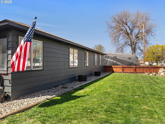 Welcome to 1805 5th Street — a beautifully maintained mid-century modern home offering the perfect blend of character and modern updates. This spacious 4-bedroom residence includes a dedicated office and features gleaming hardwood floors throughout the main level. The updated kitchen boasts a walk-in pantry, ideal for those who love to cook and entertain. The main-level primary suite includes an oversized closet and convenient laundry access, eliminating the need to go to the basement. Downstairs, the finished basement adds even more livable space and includes an egress window for safety and natural light. Sitting on a desirable corner lot, the fully fenced yard provides privacy and room for RV parking, enhanced by a newer fence and extensive landscaping. Just one block from local schools and only a few blocks to charming downtown Baker City, this home offers both comfort and convenience in a prime location.