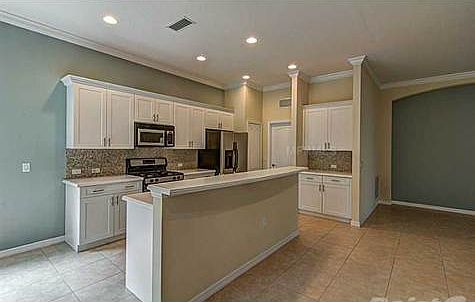 Rarely available maintenance free villa in Wisteria. Excellent move-in condition with extensive tile in main living area & newer carpet elsewhere; private backyard (with room for pool); crown molding; gas stove, dryer and hot water heater; open floor plan; and split bedroom plan plus a den. Kitchen has Corian counters, tile backsplash, breakfast nook, and a breakfast bar. Arched doorways add charm and appliances are stainless steel with front loading washer & dryer. The home also has a tile roof, paver brick driveway, and is nicely landscaped. HOA fees cover the yard care, plus community pool, and there are no restrictions on pets. This wonderful community is only about 6 miles to the Gulf of Mexico, just a short distance to Robinson Preserve with miles of hiking, bike paths, and kayaking, and is also very close to Desoto National Park.