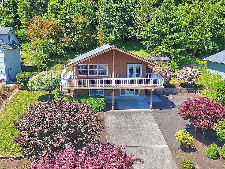 Explore breathtaking and expansive panoramic views from this Columbia City home. Located approximately 30 miles from Portland right off of Highway 30 this small town is perched on the banks of the Columbia river. It features local river access at Pixie Park, its own post office and an historic event center. From the covered deck of this 3 bedroom 2 bathroom home you can entertain guests amongst beautiful scenery, an abundance of wildlife, all while enjoying local river traffic and territorial mountain views. Large windows and vaulted ceilings let in the natural light making this home warm and bright. Upstairs features two bedrooms, a full bathroom, pantry, a gas fireplace and wood floors. Quartz kitchen countertops, downdraft range and a built-in oven will keep the cook happy. Come experience the French doors spilling to the deck for year round enjoyment.The main suite is located on the lower level and includes a walk in closet. Lower level also boasts an office, full bathroom and laundry area. The bonus room is a perfect blank slate, ideal for a workshop, hobbies, a workout room or converted back into a garage if you prefer. Beautifully landscaped yard includes mature plants flowering all year long. The exterior features a roomy tool shed. The roof was installed in 2016, water purification system in 2019 and new gutters in 2022. Come check out this view!