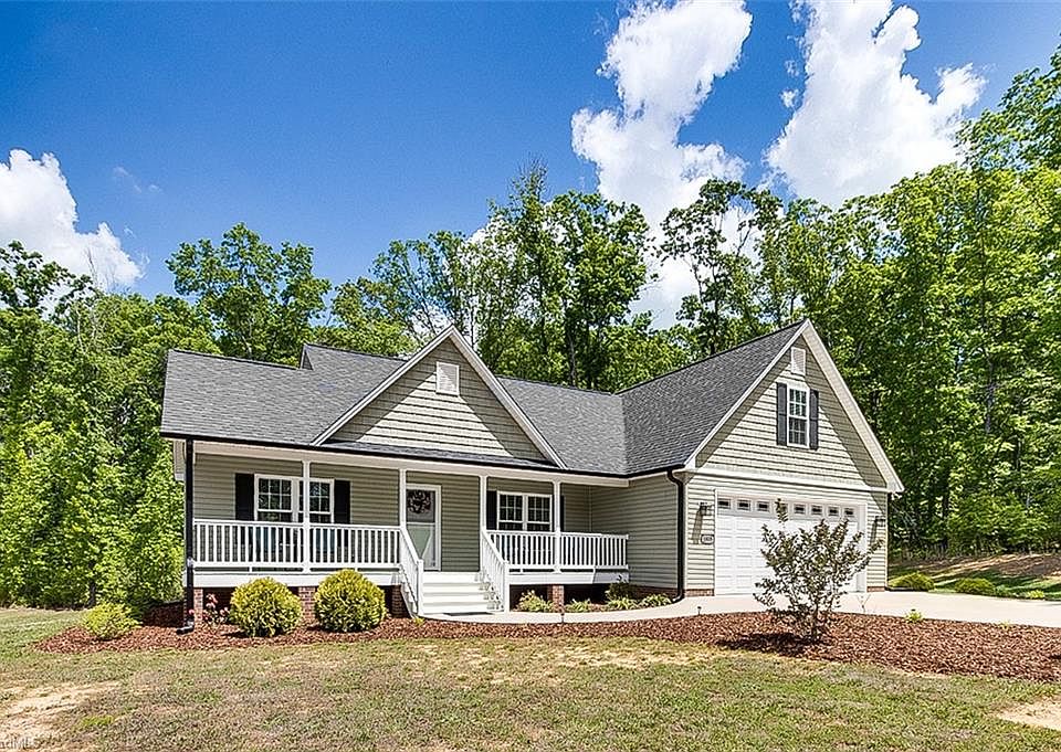 Multiple Offers- please submit highest & best offers by 6:00pm Monday 5/6. Charming one-story home built in 2019, located in Southwest Randolph County. This home features a bonus room, providing ample extra space. A large covered front porch offers a delightful setting for enjoying morning coffee and watching stunning evening sunsets. The open plan living room, kitchen and dining area enhanced by vaulted ceilings, create a feeling of spaciousness. The kitchen is equipped with plentiful white cabinets & island with granite countertops and a pantry. The home includes an attached double garage with concrete driveway and sidewalk. Situated on nearly one acre, the property boasts a generous side yard. The back deck is ideal for barbecues and enjoying views of the wooded property line. Ashbrook View Lane is privately maintained until taken over by NC DOT.