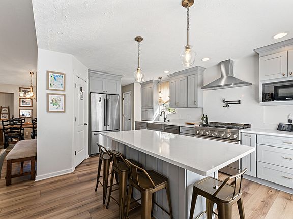 Move in ready home! This 5 bedroom/ 3 bath home features a beautiful kitchen remodel that includes new cabinetry with quartz countertops and backsplash. The gas range with a stainless steel hood that vents to the outside is a cook's dream. There is a potfiller over the range so you can fill your pots without having to carry them from the sink. A 30x12 deck overlooks the private fenced yard that has mature trees and a firepit for your family's enjoyment. The flooring on the main level has been replaced with LVP and the foyer stairs redone. The lower level has 2 bedrooms and a full bath & den with a door to the backyard which would be a great set up for multi-generational living. The tandem 3 car garage is extra roomy (35' x 25') and the driveway area has extra parking room. The home is very short walk to the neighborhood's 3 pools, tennis/pickleball courts, and a playground. The sidewalks are great, and the new greenway access sidewalk is just across from the neighborhood entrance.* A contract is in place with a home sale contingency and 48 hour first right of refusal.*