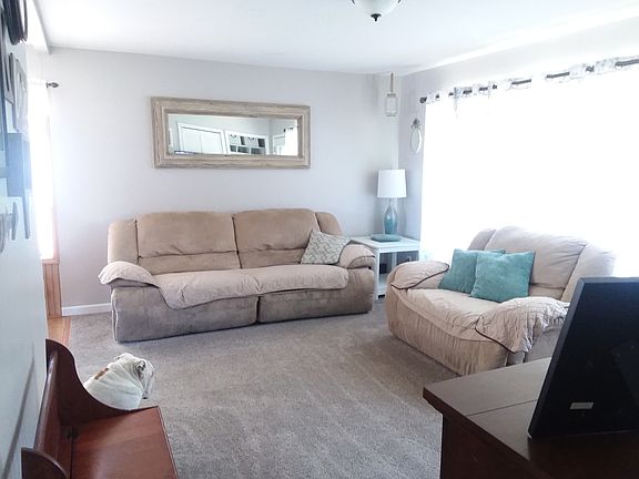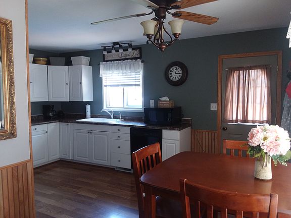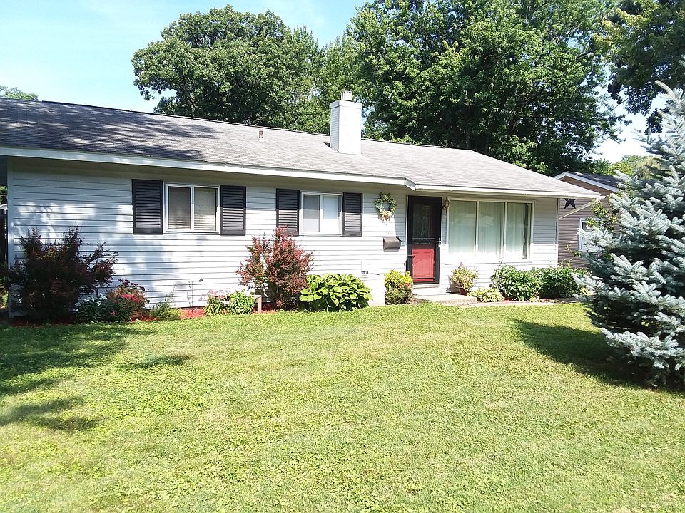 Take a look at this wonderful, move-in ready house! The remodeled kitchen has new counter tops, sink, faucet, fridge, flooring and newer cabinets. All kitchen appliances are included! The dining area is open to the living room. New wood laminate floors in the kitchen, and new carpeting in the living room and hallway. Beautiful remodeled bathroom with ceramic tile floors. Main floor laundry. Built-in coat nook with bench is a great catch-all. The detached garage is insulated and features a corner, custom built work bench and a wood burning stove. Fenced in yard with large patio in the back. Located on a quiet street. Perfect for just starting out or downsizing.