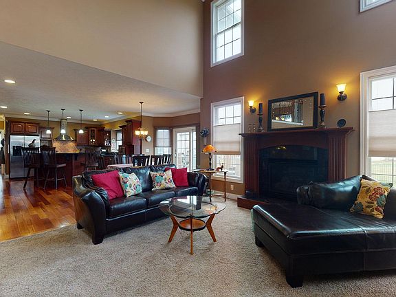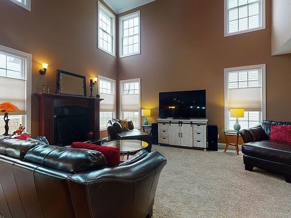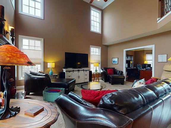 Welcome to this premium quality home on an oversize lot in the desirable Trails Edge subdivision! Situated on a quiet street, the front is all brick with bay windows and a soaring brick archway over the front entry. The foyer, formal living room/office, dining room, and kitchen all feature rich Brazilian cherry flooring and crown moldings. The entire house features Andersen windows. The generously sized formal dining room boasts a tray ceiling and raised trim wainscoting. The kitchen features Cherry cabinets and dark granite counters. The kitchen also includes a full complement of upscale stainless steel appliances, tile backsplash, and triple window with plant ledge over the kitchen sink. The first floor includes a private bedroom with en suite full bath. The 2nd floor features the luxurious master suite with cathedral ceiling, generous walk-in closet and en suite bath with private commode, double vanitiess, corner whirlpool tub, and walk-in shower. A secondary upstairs bedroom also has an en suite full bath. The other two bedrooms share a full hall bath. The unfinished basement offers virtually unlimited option for storage or future finished space. The backyard features a deck overlooking the fenced backyard. Roof is a year old and has transferrable warranty. See HD photo tour and 3D virtual tour!