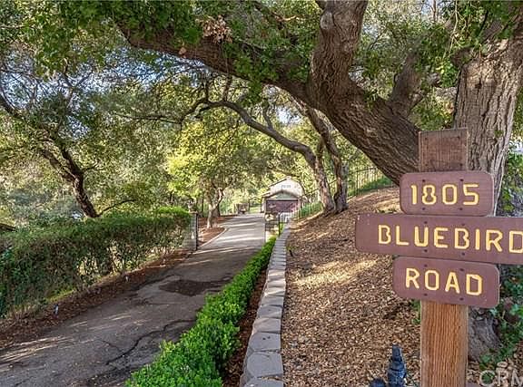 VIEWS AND PRIVACY GALORE! Nestled behind the prestigious gates of Bluebird Estates, on over 3 acres, is this beautiful Craftsman Style home, that was completely remodeled (down to the studs) 5 years ago and is an entertainers dream. When you enter the home, you are immediately greeted by an open floor plan that encompasses a beautiful kitchen with granite countertops, custom wood, soft closing cabinets/drawers, stainless steel appliances, cozy fireplace, gorgeous hardwood floors throughout, that lead into the open family room. There is a bedroom and full bathroom off the family room, perfect for extended family or guests as it has its own entrance and looks out through the glass french doors to the beautifully landscaped back yard. Adjacent to the kitchen is a full laundry room with ample storage. The spacious Master Bedroom includes a huge walk-in closet and gorgeous En-Suite, full bath complete with seamless glass shower, granite counter tops, ample storage and a deep soaking tub. Around the corner and up the stairs is another full bath and two more sizeable bedrooms with plenty of closet space. The backyard is stunning with beautiful stone/paver patio and recently updated pool and spa, perfect for summer parties. There are also many fruit trees surrounding the property. A 2-car garage with electric car charging station, RV parking, and separate "out building" and storage unit, complete this stunning home that is also zoned for horses. Must see to appreciate!