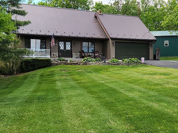Cozy 4 bedroom 2 bath Cape Cod on 1.3 acres backing to fields with mountain and waterfront views. Main level bedroom and full bath. Country kitchen with tile floors, brick accent wall. All kitchen appliances convey, washer and dryer too. Hardwood floors. Finished lower level w/pellet stove. Attached 2 car garage with a 12 X 14 one car garage/workshop on lower level. Central Air/Heat Pump. Fire & Security Alarm System. Emergency Light System. Deck & railing. Storage shed 12' x 20'.