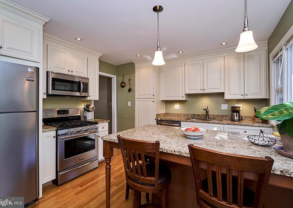 Beautifully updated 4 Bedrm, 3 Bath Rambler, 2 car Garage on terrific Private lot backing to Deep Woods with Stream. Waynewood Elementary!! Gorgeous totally replaced kitchen - Quality cabinets, Stainless Appliances, Granite counters, Wood floors, HUGE picture window - over looks DEEP Woods & Stream! Brand NEW owner's bath, Newer lower shower bath & nicely remodeled hall bath!! Flexible lower level with Long Family Room, Raised hearth Brick Fireplace w/Gas stove insert, Private bedroom - overlooking woods & pretty bath. HUGE garage - for cars or great workspace!! Flexible occupancy! Quality throughout!