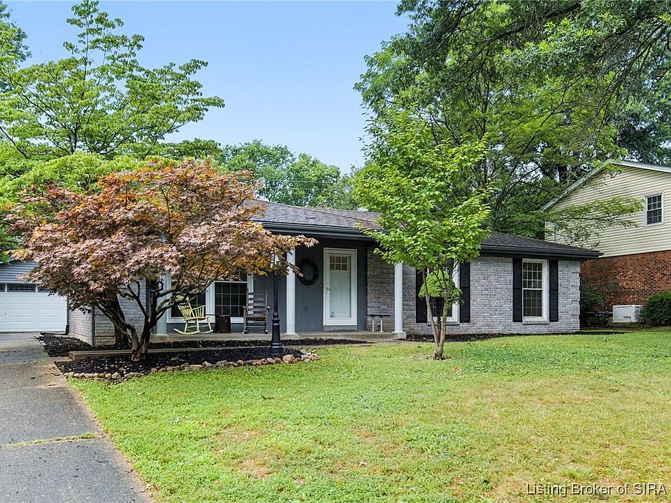 Perfectly situated all brick ranch boasts over 2500 sq.ft. of living space. Front covered porch oozes with character and ensures outdoor enjoyment. Inviting entry foyer opens to oversized formal living area, or study/office featuring wall of built in shelving perfect for a library collection. Directly adjacent find the completely updated kitchen featuring beautiful granite and butcher block countertops, trendy subway tile backsplash, open wood shelving, upgraded cabinetry providing center island w/ breakfast bar for informal eating, and stainless kitchen appliances. Open floor plan flows directly from kitchen into formal dining area, and a vaulted ceiling great room featuring exposed beam accents and stone fireplace; the perfect place for entertaining! Full bathroom is located centrally, and is awaiting your personal touch. Primary bedroom offers direct access to backyard, and provides a second full bathroom en-suite. Super clean, full basement creates even more living space boasting a wide open footprint featuring the perfect layout for family room, game room, bar area, plus 4th bedroom (no egress window). Fresh paint, solid surface flooring, upgraded lighting, AC unit and furnace new in 2022, new gutters and soffit including leaf guards in 2023, roof replaced 2013. Two car detached garage includes 240 EV charging port. Semi-private, fenced backyard. This one will not last long. Call or message today for your private showing!