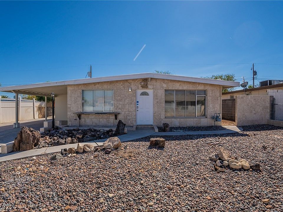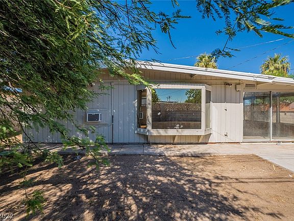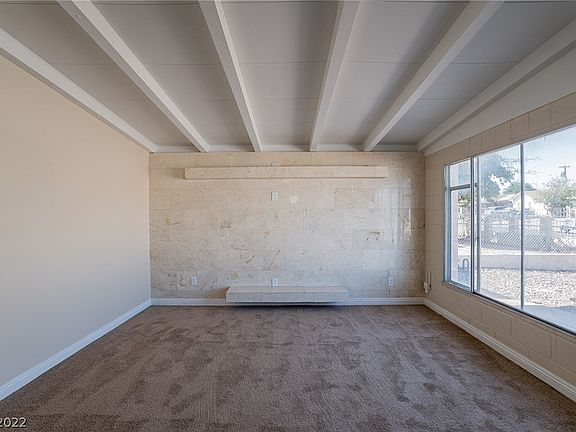 Darling single story close to Nellis Air Force Base, shopping and easy access to freeway. Extended driveway, with covered carport. New paint throughout. Mid century modern style exposed wood beams on ceiling. Sun room with bay window and fireplace. Great sized backyard with patio.