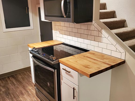 Up for grabs is this lovely basement apartment on the west end of Loveland, only a few blocks from swimming at Lake Loveland and surrounded by a variety of restaurants and grocery stores. Downstairs you can find a brand new kitchen with all new appliances. A beautiful, all metal classic Mongomery Ward sink compliments the warm butcherblock countertops and all white cabinetry. Also found is a large pantry and crawl space for lots of storage. The living area provides very generous square footage, leaving plenty of room for seating and all your entertainment needs. The bath has been recently remodeled with a new tile shower and updated fixtures. The main bedroom offers two large closets. The second bedroom is non-conforming and offers a shiplap accent wall and closet. To top it off, the entire apartment has new vinyl floors that are not only gorgeous, but durable! Come see these quaint living quarters, you wont be disappointed. Utilities are charged on a percentage basis depending on how many tenants are living in the unit. Utilities will be managed by landlord and billed all together 7 days prior to the rent due date to be paid with rent. Cable available for $35 per month. Shared half bath and laundry on main floor. Separate entrance in back of house. 1 parking space in driveway.