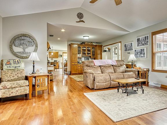 Beautiful ranch home on meticulously landscaped corner lot. Living room features vaulted ceilings with stone fireplace. Large kitchen with additional seating at the island which includes a salad sink and granite countertops. Hardwood floors. All appliances included. Enjoy your coffee in the spacious sunroom with lots of windows, leading to the large deck. $339,900