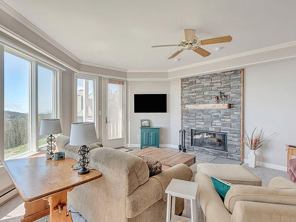 STUNNING panoramic views of the valley & Blue Ridge Mountains from the deck, kitchen, dining OR family rooms in this spacious 2B 2BA condo. Over 1300 square feet! Master suite includes King size bed, walk in closet, dual vanities, shower and soaking tub.This second floor unit has been well maintained by the current owners and has received many updates including: renovated bathrooms, new stone fireplace, Corian kitchen countertops, new carpet and paint. Move in ready! Easy access from the covered parking, elevators available. Sofa makes into a third bed in living room. Firewood provided by association as winter checks for freezing. Short walk to Devil's Knob tennis, golf & dining. Condo is sold furnished.
