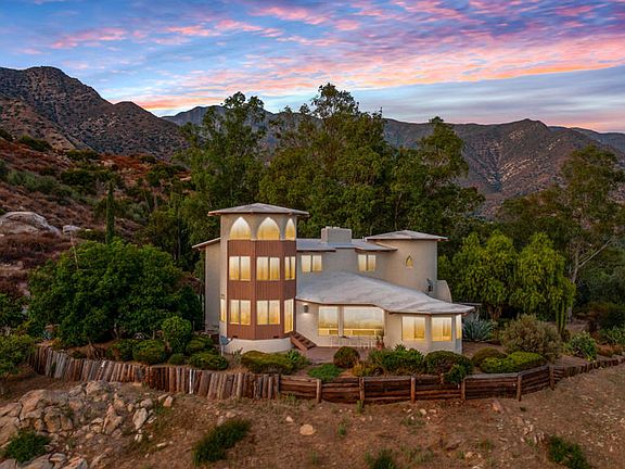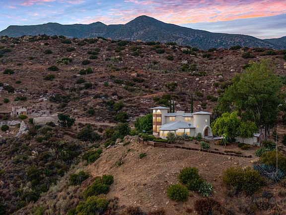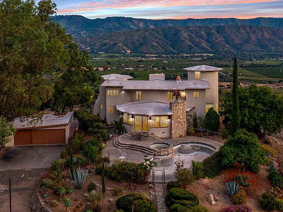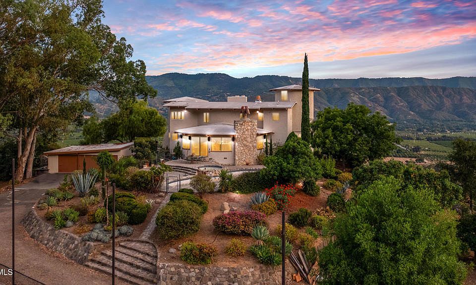 Perched atop a prominent hill in the coveted East End of Ojai, California, this beautiful home was built and designed by daredevil pilot Mira Slovak. His love for aviation is reflective in the design elements in this architectural masterpiece. Mira, a stunt pilot and Hydroplane racing champion, designed this home as an epic mountain top retreat. Used to being in the clouds, this aptly named retreat ''Castillo Cielo'' was a perfect reflection of his wild and uncompromising personality. Copias cool emanates from this Ladera Ranch castle compound!This compound is a mix of Mid Century and Spanish style. The three story main home has one bedroom, three bathrooms and sits on approx 11 acres, with a three car garage, pool, hot tub, and tennis court. The guest quarters includes one bedroom, living room with fireplace, and kitchen with a large garage that would allow stacker units. This is an entertainer's dream with unbelievable views of the Ojai Valley from the 20' tall sunken living room. You can also see into the upper Ojai valley and the sparkling blue of lake Casitas off in the distance. The three story 'lookout tower' provides a birds eye view of Ojai. Be the next custodian of this beautiful land!