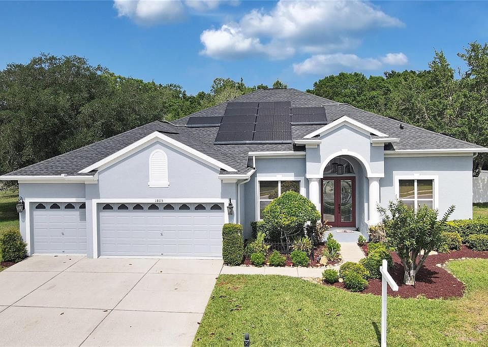 One or more photo(s) has been virtually staged. Luxurious and upgraded, this 5-bedroom, 4 bath home sits on a peaceful oversized conservation lot in the desired gated community of Magnolia Estates. BONUS: Solar panels which are owned so there is no taking over of payments making your electric bill on average $30 a month per seller. As you enter the home through the grand beveled glass double entry doors, you will find a functional entryway space that flows into the open concept living room dining room area. These rooms are adorned with large sliding glass doors allowing natural light to filter in. Off the entryway is a bedroom with double doors. If a bedroom is not needed, would make a great flex space for an office or playroom. The breathtaking kitchen is adorned with beautiful 42” wood cabinetry, stunning quartz countertops, and an oversized walk-in pantry that is not seen in most homes. More than enough space for all of your food storage needs. Breakfast bar seating as well as an eat in space with windows to enjoy the backyard view. Stainless steel GE profile appliances which include double wall ovens making this the ideal kitchen for hosting holidays and family gatherings. The kitchen is open concept to the living room and is light and bright with additional sliding glass doors. Off the living room is a bedroom and bathroom that would make great in-law quarters as it offers privacy. The large primary suite, adored with tray ceiling, is located on the main level of the home and includes 2 large walk-in closets and an en suite that features separate vanities, a garden tub, and a walk-in shower. This bedroom also has sliding glass doors that lead out onto the Lanai that allows captivating views of the parklike backyard space. There are 2 additional bedrooms downstairs where you will find the 3rd bathroom conveniently between the 2 rooms. Upstairs you will find a recreation room or could be a 6th bedroom as it does have a closet and another full bathroom. Currently it is used as rec space with a pool table, theater seating, and an electric fireplace. Other great interior features of this home include a 3-car garage, an indoor laundry room with a utility sink and cabinets, architectural arches, and Bose surround sound pre-wired throughout the home. The expansive backyard is fenced with vinyl fencing and it backs up to a conservation, so it is very private. There is more than enough room to put in a pool in the future and still leave you with plenty of property. The large lanai features an extension with Sun setter awnings that are retractable so you can lounge in the sun or relax in the shade. A great space to relax and enjoy your morning cup of coffee. There is an additional sitting area which would be perfect for a firepit and includes a beautiful hot tub which has new motor, heater, and cover and it's the perfect place to relax your muscles and watch the beautiful Florida sunsets. This outdoor space and home is perfect for entertaining with the abundance of space inside AND out. RECENT UPDATES INCLUDE: NEW ROOF (12/2020) TWO AC Units (2021) NEW GUTTERS AND LEAF GUARDS, and SOLAR PANELS OWNED (2021) Magnolia Estates is a gated community that features sidewalks, playground, and a community boat ramp with access to the Anclote River and Gulf Of Mexico. LOW HOA ONLY $310 A QUARTER! And NO CDD fee. Located centrally to the Trinity area and close to area amenities. Thoroughfares to Clearwater/ St Petersburg, and Tampa are only minutes away making an easy commute.