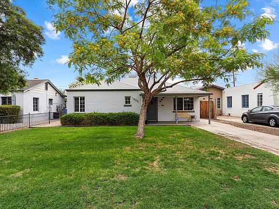 Welcome to 1805 N Dayton St, a beautifully updated 3-bedroom, 2-bath home located in Phoenix's highly desirable Coronado Historic District. A detached one-car garage adds flexibility for parking, storage, or workspace needs. This light-filled home blends vintage charm with modern updates. Herringbone tile throughout living room, dining room and kitchen. Hand made shaker cabinets throughout, and Calacatta quartz countertops in the kitchen and baths. Hexagon tile floors in bathrooms and master shower. Exposed brick wall in the living room. The floor plan has been opened and modernized to allow for maximum entertainment and enjoyability. Enjoy Arizona living in the lush, private backyard perfect for relaxing evenings or entertaining guests. Just minutes from Banner University Medical Center, Phoenix Children's Hospital, and other major healthcare facilities, this home is perfectly situated for hospital employees seeking a short commute. You'll also enjoy easy access to downtown Phoenix, Roosevelt Row, and all the best local coffee shops, restaurants, and parks. This home delivers both lifestyle and location. Lease Term: 12 months Utilities: Tenant is responsible for gas and electric. A $85 a month fee for water/sewer/trash will be added to base rent. Smoking: Strictly no smoking allowed inside the home