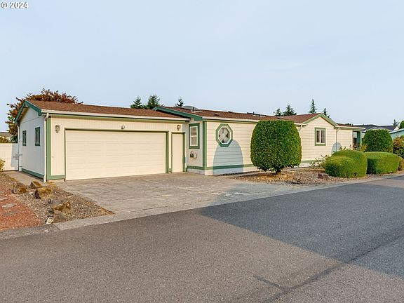 This well-maintained property is a dream for those seeking comfort and convenience in a serene 55+ park setting. Step inside to an inviting open floor plan with a huge open kitchen featuring real wood cabinets and newer appliances. Natural light floods the space, creating a warm and welcoming atmosphere throughout. With ample storage space and large rooms, this home offers both functionality and comfort. Two patio areas to enjoy the sunshine or sit undercover. The spacious lot boasts a hard to find two car garage. The low maintenance landscaping requires minimal upkeep, allowing you to enjoy the outdoors without the hassle. Close to medical services, restaurants, shopping, parks, and nature trails. All appliances are included.