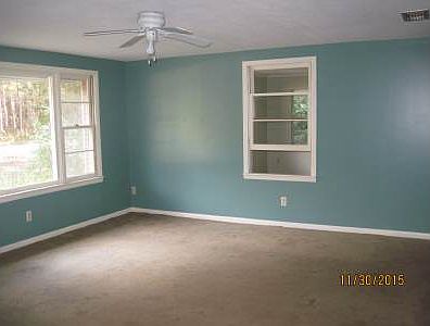 Brick home on 5 acres has attached carport with door into house, enclosed porch off the dining area, workshop out back. Bedrooms have wood flooring. Acreage is partially cleared in the front and has large oak trees. Parcel is being cut from larger 95 acre tract.