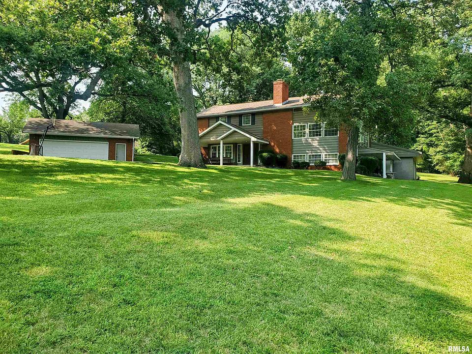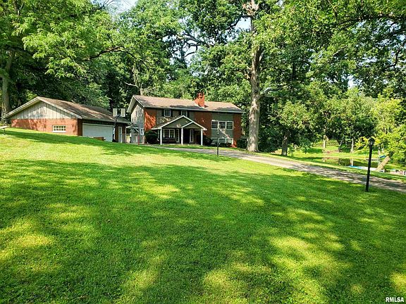 WELCOME HOME! Excellent curb appeal and location! Great opportunity for your forever home! Amazing views from almost every room in this 4 bedroom, 3.5 bathroom 5 level home sitting on a 1+/- acre lot on prestigious Oakwood Drive! Enjoy the pond with your own boat dock (boats stay) in the summer months and ice skating in the winter months. Impressive double door entry with dual staircases to the spacious living room with lots of windows and fireplace. Gorgeous kitchen with breakfast bar and a large informal dining room with skylights and a gas fireplace. Main floor home office was originally a formal dining room. Master en suite with walk in closet and full bathroom is located on it's own private floor and boasts a beautiful water view! Lower level offers additional family room with another fireplace and walks out to a lovely covered patio! A lot of square footage for the price!! Appliances stay but sold "as is". Fireplaces and chimneys sold "as is". Room sizes and square footage are estimated, not guaranteed to be correct. SQ. FT. per Tazewell County records.