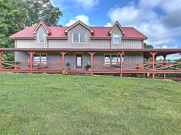 East Tennessee Homestead Dream!! 24.19 Acres with a 3240 finished square foot home, pond, barn, shed, shop, kennel, and milk barn. This property has it all, plenty of pasture for animals, trails through the wooded areas for hunting or atv rides, and total privacy. The home has 4BR/2.5BA and all lumber in the construction was taken from the property. Main level master bedroom and bath feature cedar cabinetry, cedar walk-in closet and full bath. Kitchen has tile flooring, custom cherry cabinets, and pantry. Large living area with stunning log staircase leading up to the second floor. Additional half bath downstairs for convenience. Upstairs has 2 more bedrooms and a quilting room and a living area along with another full bath. Tons of built in cabinetry. Has exposed beams throughout. Full basement with a wood stove that runs through the duct work to supplement heat. 2 heat pumps, one for the main level and one for upstairs. Underground power to home. The outdoor living is phenomenal with multiple buildings, 60X80 Barn with loft storage, 32X54 garage with shed and wood stove, and a huge kennel. Metal siding, metal roof, and wrap around porch finish off this amazing property, schedule your showing today!!!