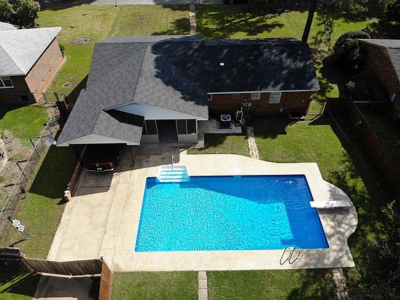 NORTHWEST ALBANY RANCH WITH AN IN-GROUND POOL! ALL BRICK! NEW 2019 ROOF! Imagine Pool Side Living! Make A Big Splash in this refreshing 3 Bedrooms 2 Bath Completely UPDATED Home with beautiful hardwood floors , ceramic tile flooring that looks like wood in the den and luxury vinyl plank flooring in the Bonus Room! Fabulous Kitchen is complete with New Stainless steel appliances, fresh paint, Center island with breakfast bar seating, new light fixtures, loads of updated cabinet space and updated counter top space and dining area with views of the pool! Master bedroom with walk in closet and private bathroom! The two additional bedrooms are spacious and have ample closet space! Come Home to Comfort where Vacationing can be all year round, right here in your very own home. Fenced automatic gate for privacy and security! Carport and parking with in the gate! The plush Landscaping offers complete Privacy! Screened in porch and lots of lounging around the pool, ideal for grilling or basking in the sun! Wired storage shed with work benches! The vinyl pool has a new liner 1 year ago, new pump and filter. New front vinyl windows! New sliding doors to the screened in porch! This location is excellent - Close to everything yet quiet and tucked in a small cul-de-sac street! Here is your opportunity to STAY COOL IN THE POOL next Summer at an affordable price!