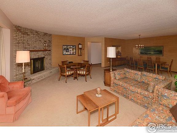 Look out on the 3rd Fairway of the prestigious Fort Collins Country Club golf course from the covered porch! All brick ranch with 30 year metal roof. Impeccably maintained w/1978 authenic retro finishes. 3-car garage and mature landscaping. Full basement, 75% finished with a family room, 2 bedrooms and bath. The main level has 2 fireplaces, large living room, dining room, cozy family room, study & craft room. Buyer can join the Country Club & hop onto the golf course from your backyard. No HOA.