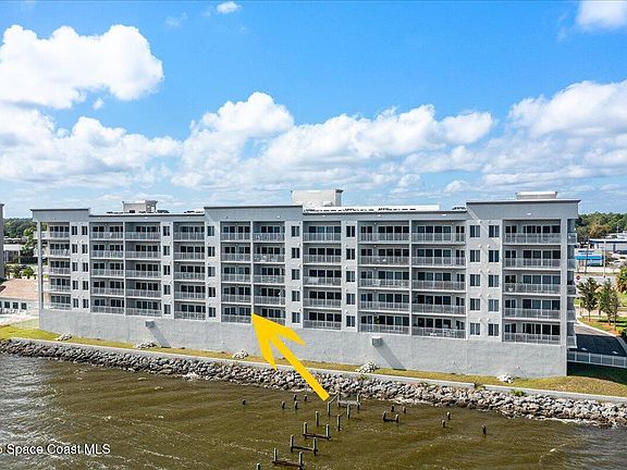 Welcome to River Palms — a newer riverfront 3-bedroom, 2-bath condo offering the perfect blend of luxury and coastal tranquility. This residence features an upgraded kitchen with solid surface counters, stainless steel appliances, and rich wood shaker cabinetry. Wood-like tile flows seamlessly throughout, complemented by impact windows for peace of mind and energy efficiency. Enjoy both a semi-private garage space and an additional assigned under-building parking spot. From your balcony, take in breathtaking river views, rocket launches, and daily sightings of dolphins and manatees right outside your door — the ultimate Florida waterfront lifestyle. Furnishings are negotiable outside of the real estate transaction. Complete with community salt water pool and clubhouse right on the river. Close to shopping, restaurants and major highways.