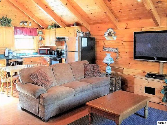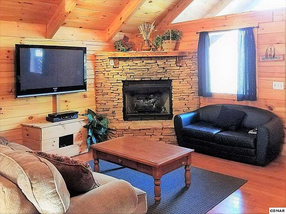 SUPER nice one bedroom, one and a half bath cabin with so much to offer! Fantastic investment property with superb rental income--over $50K for 2017!! As you enter the cabin, you will be stepping into a large open living area/great room with cathedral ceiling and tall windows that will give you the WOW affect plus a quaint, cozy feel for honeymooners and small families as well! This room includes a living room area with stack stone gas log fireplace, fully equipped kitchen, dining area as well as a pool table. The entry porch on this level features an exceptional quality extra large hot tub that is somewhat enclosed for extra privacy. Downstairs is the master suite featuring whirlpool tub and a door leading to a private porch complete with porch swing! There is a deck located conveniently off of the kitchen with a gas grill to fix steaks after a day of exploring the many attractions of the area, not to mention enjoying the Great Smoky Mountains National Park! All furnishings and decor remain with the cabin--turn key, ready for you to go! Exquisite tile work around whirlpool tub and in both bathrooms truly make this cabin one of a kind! Upgrades include: Kitchen appliances 2009, TV's 2011, washer and dryer 2010, laminate flooring downstairs 2016, exterior stained 2016, newly graveled driveway 2018, new tile in upstairs half-bath and new toilet 2018