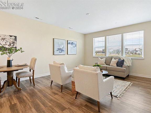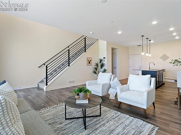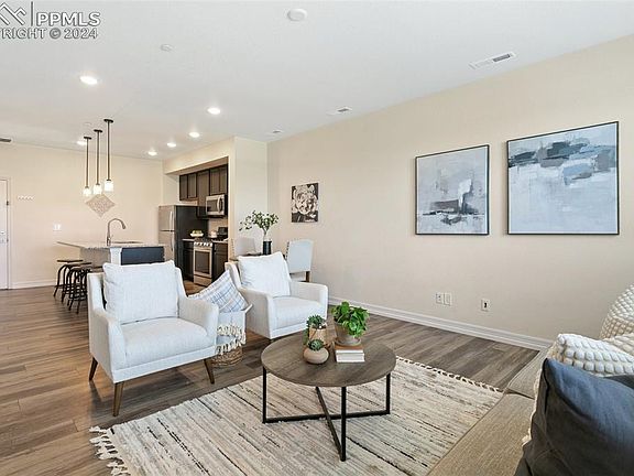 This like new 3 bed, 2.5 bath townhome is perfectly located within walking distance to the newest dining, shopping and entertainment venues Colorado Springs has to offer and only a couple minutes to I25! Enter into this modern townhome with it's sleek modern finishes to an open floor plan, the latest stainless appliances, granite counters, and connected smart home features. Upstairs are three spacious bedrooms, a conveniently located upper laundry that comes equipped with included LG washer and dryer, and two full bathrooms. Just outside the front door, the amazing mountain views are a backdrop to a new expansive 8 acre green space with parks, walking path, and athletic courts. This one is all about convenience and location! Come see it today!