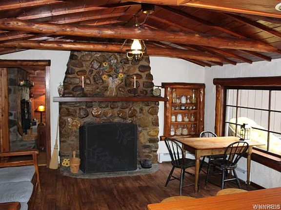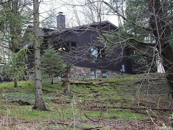 Unique 4 bedroom, 3 bath home nestled in the pines in private, park-like setting. 2 stone fireplaces. Stream views. Library/family room w/large, comfortable window seat, cathedral ceiling & skylights. Master bedroom w/tongue & groove cathedral ceiling, sliding glass door to balcony overlooking majestic maples, pines & beech, walk-in closet & master bath w/Jacuzzi tub & river rock tiling. Relax to the sound of the stream on the large front deck. 2-car attached, 2-car detached garages. Downstairs office could be 4th bedroom or in-law suite. Walk to the golf course!