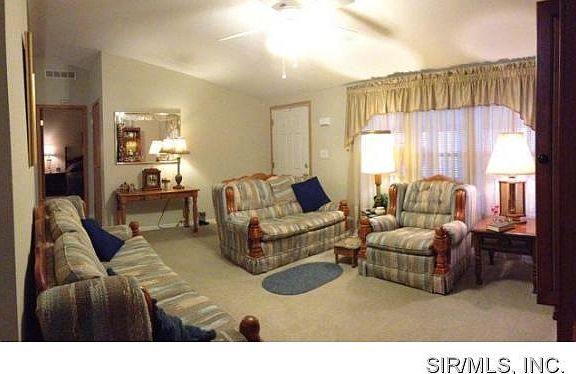 Call The RED Team and speak with Summer Penet at 618-977-9862 or email at Summer@RealEstateDone.com for more informatio.NO MORE HIGH TAXES! Meticulously maintained! Enjoy low maintenance living in this split bedroom, open floor plan home on one level. Built in 2002 and featuring 3 bedrooms, all with walk-in closets with organizers. Vaulted ceilings throughout the home create an open and airy feel. Home constructed with 8â, 2x6 wood studded exterior walls. Interior walls are 6" thick with 1/2" drywall finish. Master bedroom with ¾ Master Bath featuring double adult height vanity. Spacious kitchen with plenty of oak cabinets, tile backsplash, pantry, desk area and bar top dining. Gas stove, refrigerator & built in microwave stay. Updates since 2002 include Master Bath & Utility Room flooring (12); Kitchen floor (11); New Architectural Shingled Roof (14); Water Heater (13) A/C Coil (14); 1 car att garage, front deck, porch swing, Tuff Shed included.