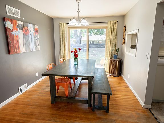Centrally located midcentury home with three bedrooms on one level. Main floor living space has original oak flooring and is open to the dining room. Floor to ceiling wood burning fireplace for cozy fall/winter nights. The kitchen has a coffee bar and laundry area. Glass door from dining room to a large patio and fully fenced back yard. Home has raised garden beds, two patios and area perfect for a fire pit or next summer's pool. The lower level has two additional bedrooms and large full bathroom. Additional living space has wood burning fireplace and bonus area. New shingles 08/2022. A total of 2,312 finished square feet, 5 bedrooms and 2 bathrooms. Close to parks, schools, shopping and more.