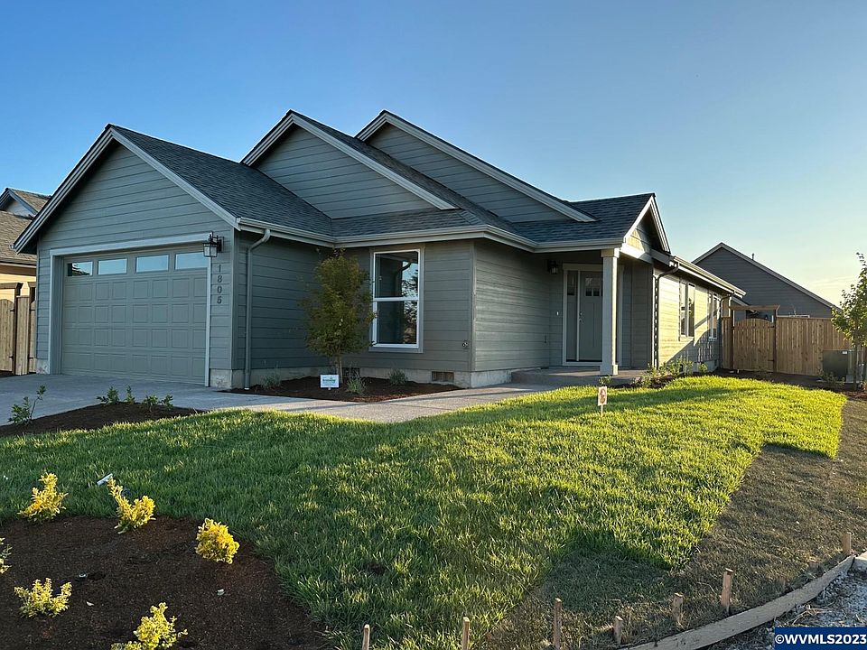 Beautiful Premium Corner lot Single Level angled entry 3 bedroom 2 bath home w/covered back patio in The Gleanns at Barberry. Designed for today's living w/large kitchen & spacious great room open concept layout, shaker soft close cabinets, stainless appl, 'Iced White' quartz countertops, island w/eating bar, dedicated pantry. Primary suite with dual basin vanity, linen & walk in. AC Added. Laundry room off garage. Fully landscaped fenced front & Backyards w/sprinklers. Green Build - No HOA. Close 8/16/23