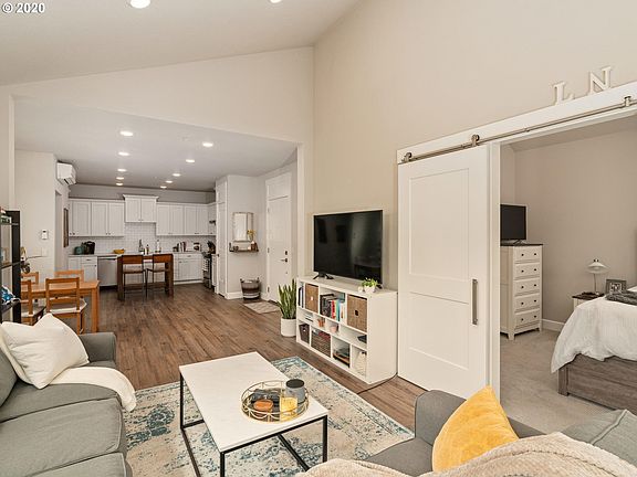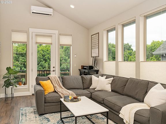 Exquisite, bright and airy, this newly built condo is a rarity. Perched on the top floor, enjoy the south facing glow as the sun illuminates through the wall of windows lining the vaulted ceilings. Open floor plan well suited for entertainers featuring spacious kitchen, tiled backsplash, gas range, and pantry. Rad location tucked peacefully inside the heart of SE between Hawthorne + Buckman. Let fresh in through Juliet balcony, or lounge in outdoor seating area. 12 unit building and no elevator!