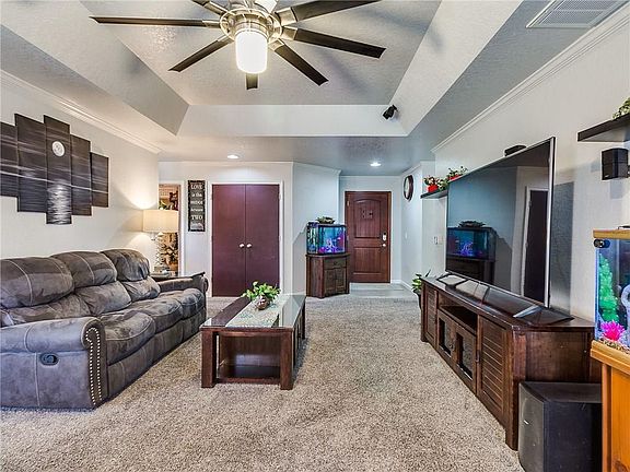 This home has TONS of new upgrades and all major components of the home have been recently replaced. Check out this list! ALL NEW WINDOWS in 2018 with LIFETIME TRANSFERABLE WARRANTY New AC and heating unit 2017 New commercial grade hot water heater New gutters 2018 New 8 PERSON HOT TUB 2018 - excellent condition Alarm system with cameras Smart home thermostat Digital smart locks on all doors Updated LG appliances Remote controlled updated ceiling fans Composite storm shelter 10 Person with 25 Year Warranty, added in 2014 New custom front door New paint, carpet, and tile 2018 New plugs and light switches throughout New fixtures New garage door opener Updated bathrooms Two outdoor storage units In-ground landscaping lights on a programmable timer